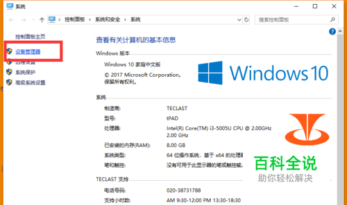 在打开的“系统”窗口中,点击“设备管理器”项