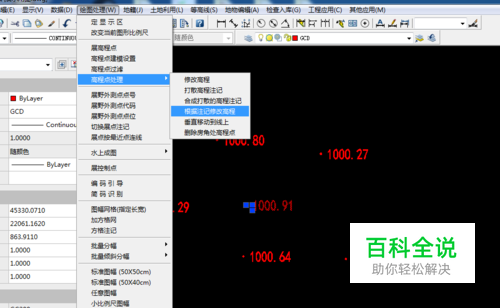 2、高程点标注值与实际值不一致 如果途中的高程点标注值与实际值不一致时候,我们可以重新提取高程点,然后在展开。