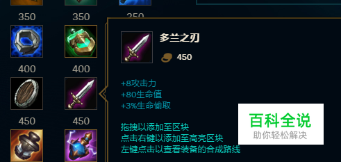 接下来我们可以给皮城女警出一个增加攻速、暴击和清兵能力的电刀。所有的攻速暴击装在8.11版本中价格都变高了很多。