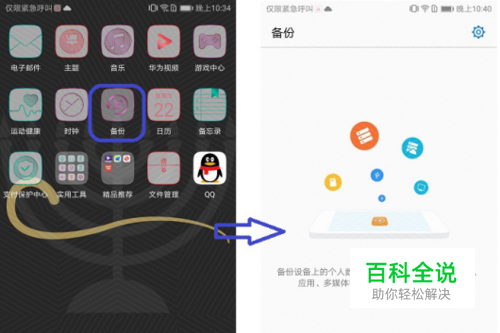 点击手机上的“备份”工具,进入到“备份”界面中,点击下方的“备份”按钮。
