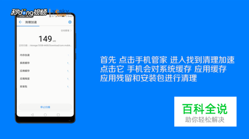 首先,点击手机管家,进入找到“清理加速”,点击它,手机会对系统缓存、应用缓存和应用残留和安装包进行清理。