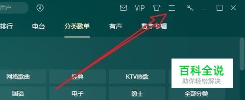 首先在电脑上打开QQ音乐 ,然后点击右上角的“主菜单”按钮。