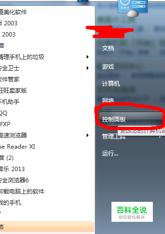 找到之后我们选择开始菜单,然后选择“控制面板”选择进入。