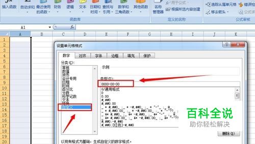 自定义------类型(在类型中输入:0000-00-00)------确定, 如图片键头所示