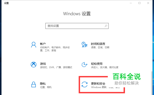鼠标移到"更新和安全"上,左键单击