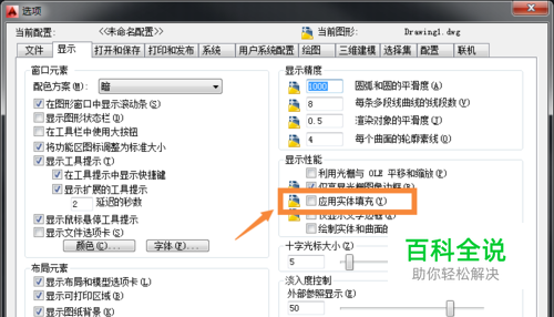 法1:cad界面输入op,弹出来“选项”窗口,可以看到一个“应用实体填充”,勾选,然后点击确定