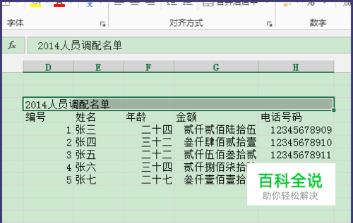 就可以看到标题是居中的,同时有没有合并单元格