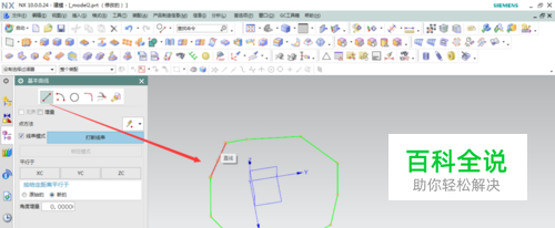 打开软件,选择插入/曲线/基本曲线,使用直线连续绘制一个封闭图形,这里随意绘制的,如图所示。