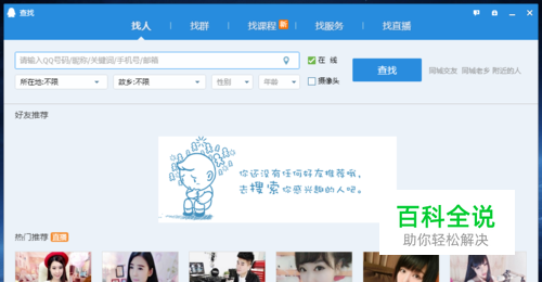 输入需要查询的QQ号码,如果是对方是在线,则头像是点亮状态。
