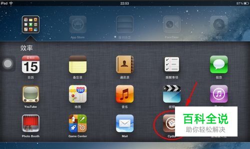 如果你iPad已越狱,首先打开桌面上的"Cydia"程序。