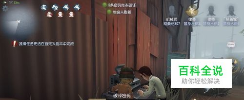 配合的队友: 玩机械师,我们的队友要积极的配合我们,比如一开始我们破解的时候,派出1-2个队友去分散注意力,有人被抓了,队友去打探情况,决定是不是要一起去营救等。