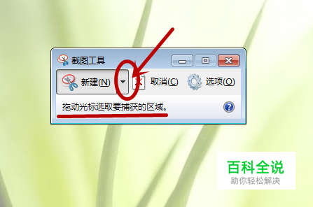电脑会自动弹出一个窗口,我们可以选择“新建”旁边小黑三角号,底下都会操作提示,小编选的是“矩形截图”,大家可按个人爱好来