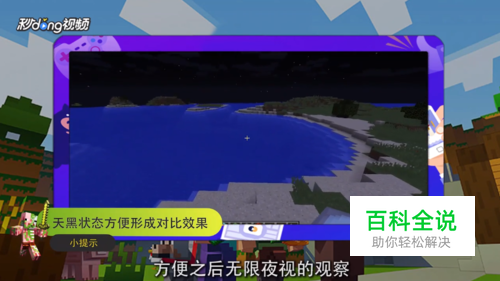首先,进入“我的世界”游戏中,进入的时候最好保持天黑状态,方便之后无限夜视的观察。