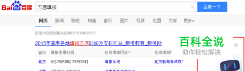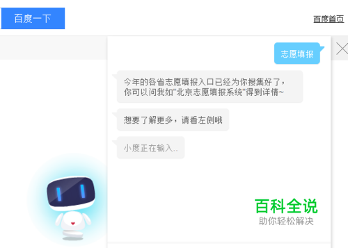 第一步:打开浏览器,使用百度搜索引擎搜索热门词汇,比如“高考”会出现小度机器人