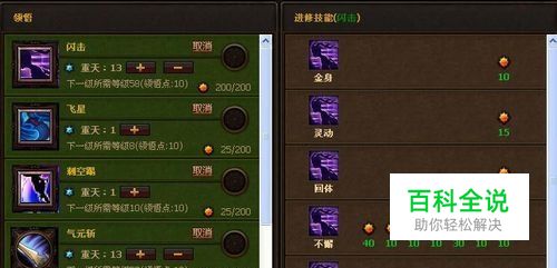 闪击 闪击尽量的提升重天数,精修点点出金身、灵动、回体、不懈点满、割裂10点、猛攻。