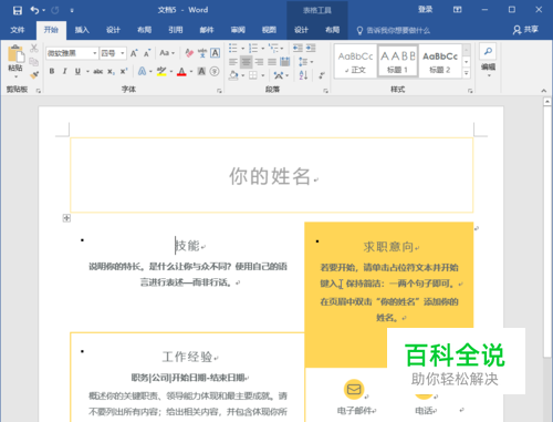 等一小会儿,就自动重新打开一个word文档,然后你就可以在这个模板上进行修改,形成自己的简历啦。