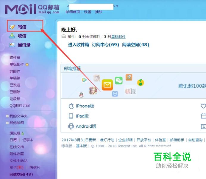 使用QQ号码登录QQ邮箱网页,并在邮箱主页面中点击“写信”按钮。