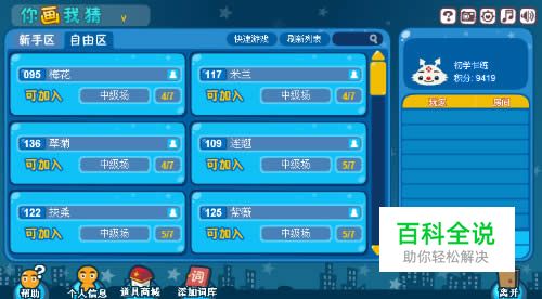 进入游戏后,就会来到游戏大厅界面。你可以点击任何一个房间进入,每个房间最多有7名玩家同时游戏。建议尽量选择人多一点的房间,玩家比较多,游戏才会更有趣。