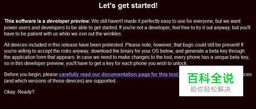 破解 先进入“MENU-设置-关于手机-设备信息”,记下“设备序列号”,如下图 打开网站:链接地址见原文,点击“Download for Windows”,如下图 之后弹出窗口提示下载解锁工具,如下图,保存即可。 同时,要求填写一些资料,如实填写即可,其中“Serial number”即之前记下的“设备序列号” ,如下图。 填好后,点击“Generate key”,会给出“Beta key”,记下即可,如下图。