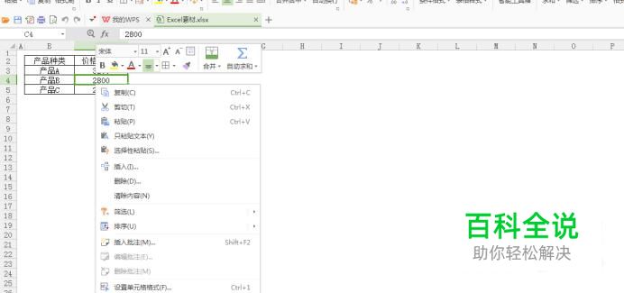 点击单元格在点击鼠标的右键,会出现下图所示的画面