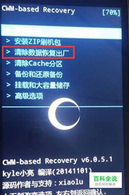 进入Recovery主界面后,移动选择【清除数据恢复出厂】然后在选择【是的-清除所有用户数据】电源键确认