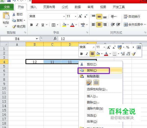 然后我们选中这组数据并右击,选择复制;