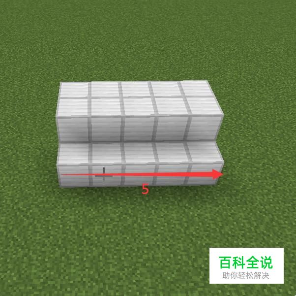 首先用任意方块(建议用石头或者其他染色粘土等建筑类方块。)横向放置5格,提高一格再放置2个5格。