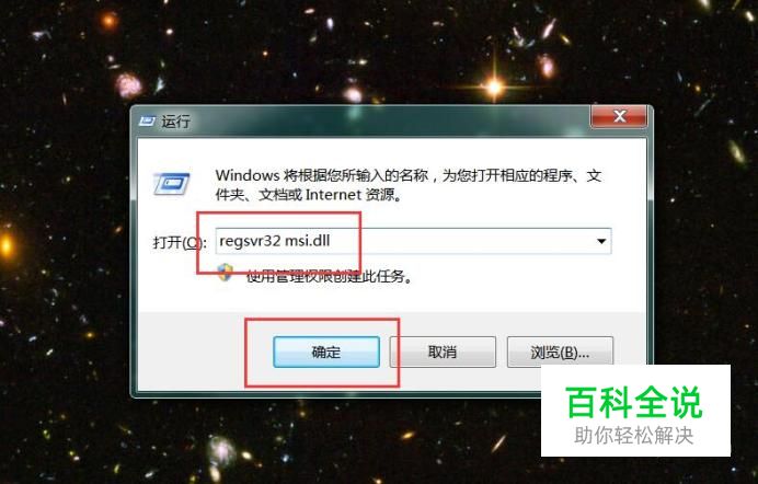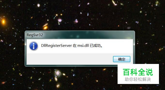 首先,我们可以在桌面上按下Windows徽标键+R键,打开运行命令窗口,输入“regsvr32 msi.dll”命令,并回车,如果弹出成功的信息,则可修复该问题。