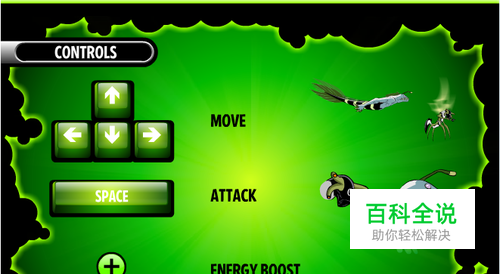 方向键移动,空格键攻击,吃加号可以增加体能。
