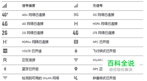 网络状态图标可能因您所在的地区或网络服务提供商不同而存在差异。