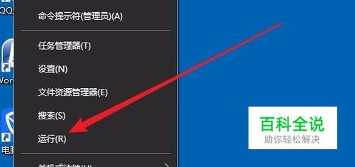 我们右键点击桌面左下角的Windows徽标键,在弹出菜单中选择“运行”菜单项。