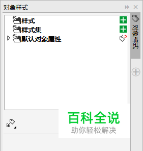 打开CorelDRAW软件,新建文档,单击菜单栏“窗口>泊坞窗>对象样式”命令,或者直接按下快捷键“Ctrl+F5”,界面右侧弹出“对象样式”面板。