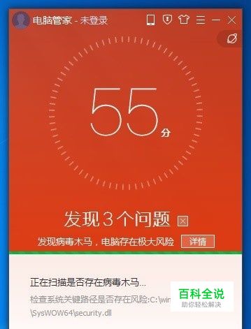 双击任务栏的图标,打开电脑管家→立即体验,竟然有3个问题。