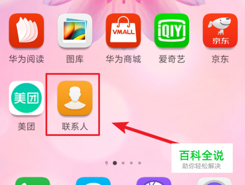 解锁我们的华为手机后,在手机中找到系统自带的联系人的图标进入。