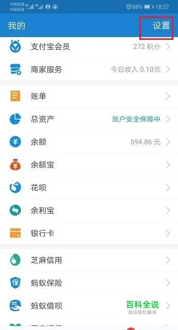 第一步在华为mate20中打开支付宝,进去我的界面之后,点击右上方的设置,如下图所示:
