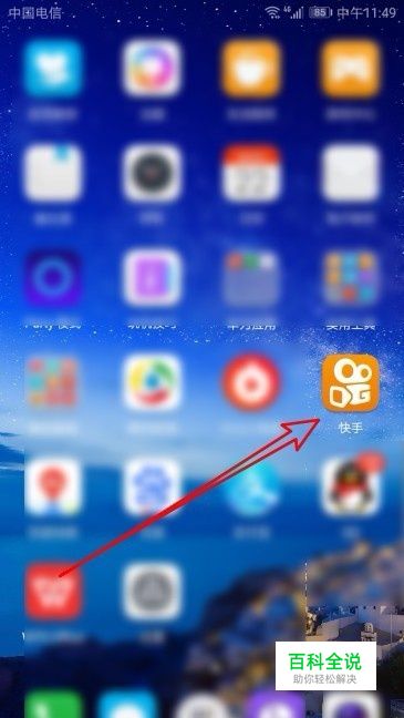 在手机上左右滑动屏幕,在屏幕上找到安装好的“快手”的图标。