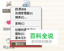 在桌面右键单击我的文档、然后选择属性。