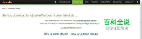 https://download.moodle.org/download.php/windows/MoodleWindowsInstaller-latest.zip 点击该链接,网页打开后即开始下载moodle安装包。,网页如图所示。