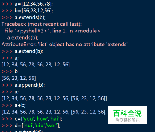 在python语言中,有一个基本数据类型-----列表,可以使用extend和append两个方法给列表添加元素。可以直接使用两个或两个以上的列表,进行合并列表元素。下面利用几个实例说明,操作如下: