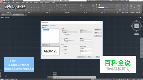 点击注释,打开下拉菜单,点击文字样式,点击“管理文字样式”,找到大小,将图纸文字高度调整为合适高度