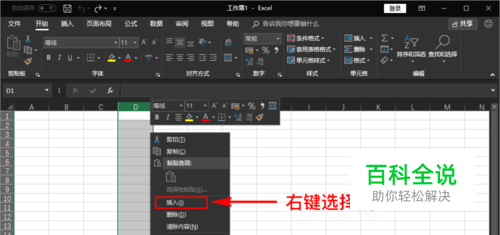 我们点击鼠标右键后,选择“ 插入”,点击后,就会在选中的那一行的前方插入一行或选中的那一列的上方插入一列,但其只能插入一行或一列。