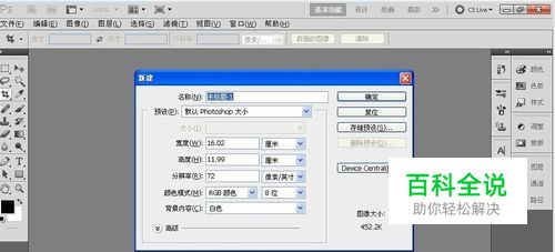 打开Photoshop,新建文件。数值根据情况自定。