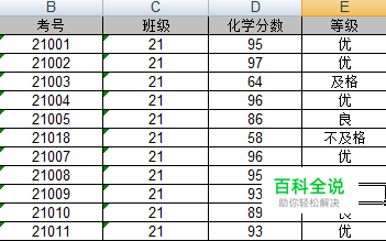 在成绩单中,学生的成绩基本上都是一个分数,但是有时候我们需要根据学生的成绩来划分A、B、C、D或优秀、良好、及格、不及格这样的等级。而我们通过excel中一个简单的函数就可以实现将学生的成绩转换成相应等级。