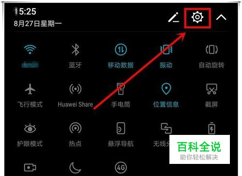 在手机桌面上点击“设置”选项,或在手机屏幕顶端下拉菜单中,点击齿轮状“设置”图标,进入设置页面。