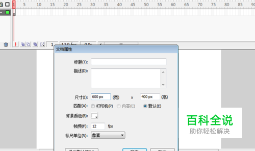 首先启动flash8,新建一个大小为600*400,背景颜色为白色,帧频为12fps的文档。