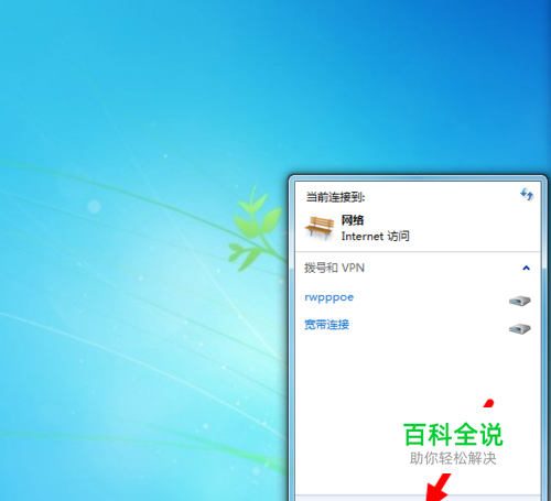 单击电脑桌面右下角小电脑图标(如何该图标为红叉就要检查网线连接了)。从调出的对话框中选择“打开网络和共享中心”点击。