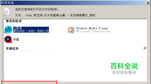 我们拿windows media player来做示范,选择右边红框的"将此程序设置为默认值"的意思是,只要是能用windows media player打开的文档,以后全用windows media player来打开,就是与windows media player关联了