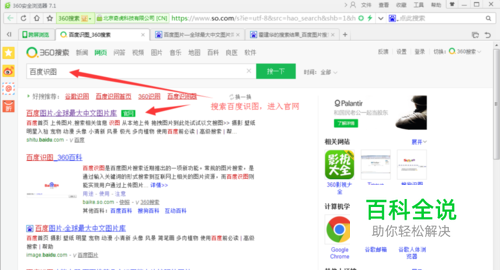 在百度浏览器中搜索百度识图,进入官网页面。现在识图已经合并到百度图片中,可以直接上传和搜索了。