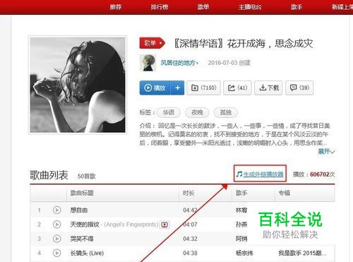 第一步:打开网易云音乐网页版,点击想制作成外链播放器的歌曲。