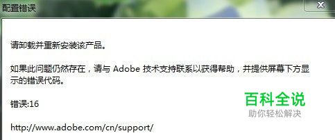 在使用Adobe Flash Player过程中,双击快捷方式后,出现【卸载并重新安装】的错误,【错误代码:16】!如下图: